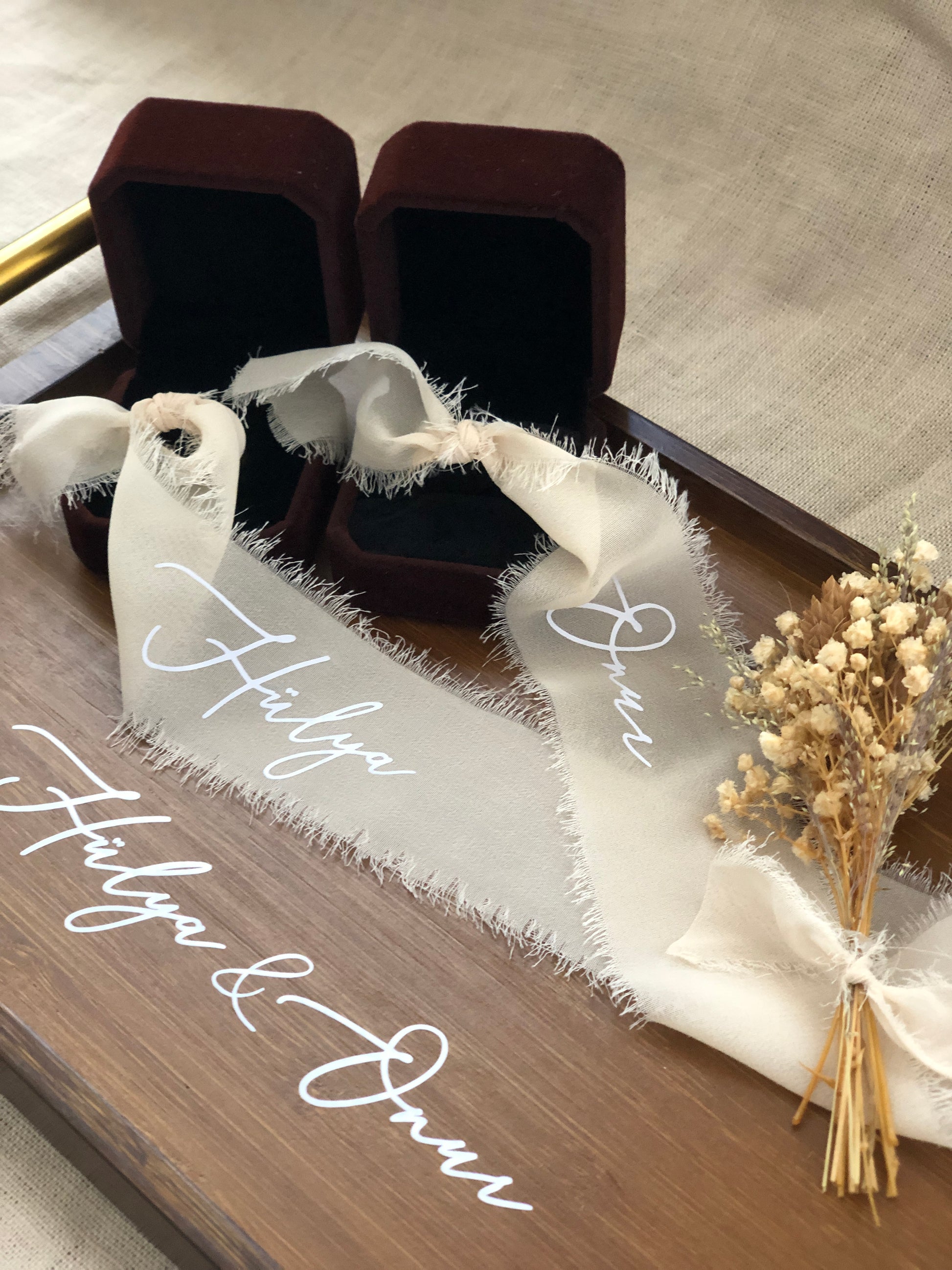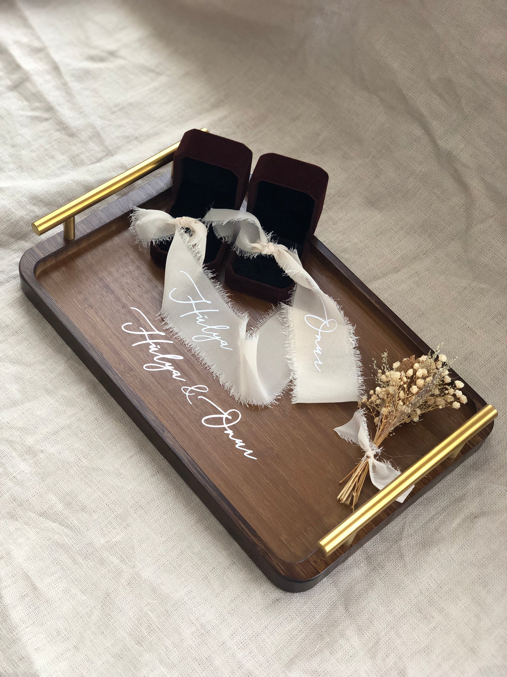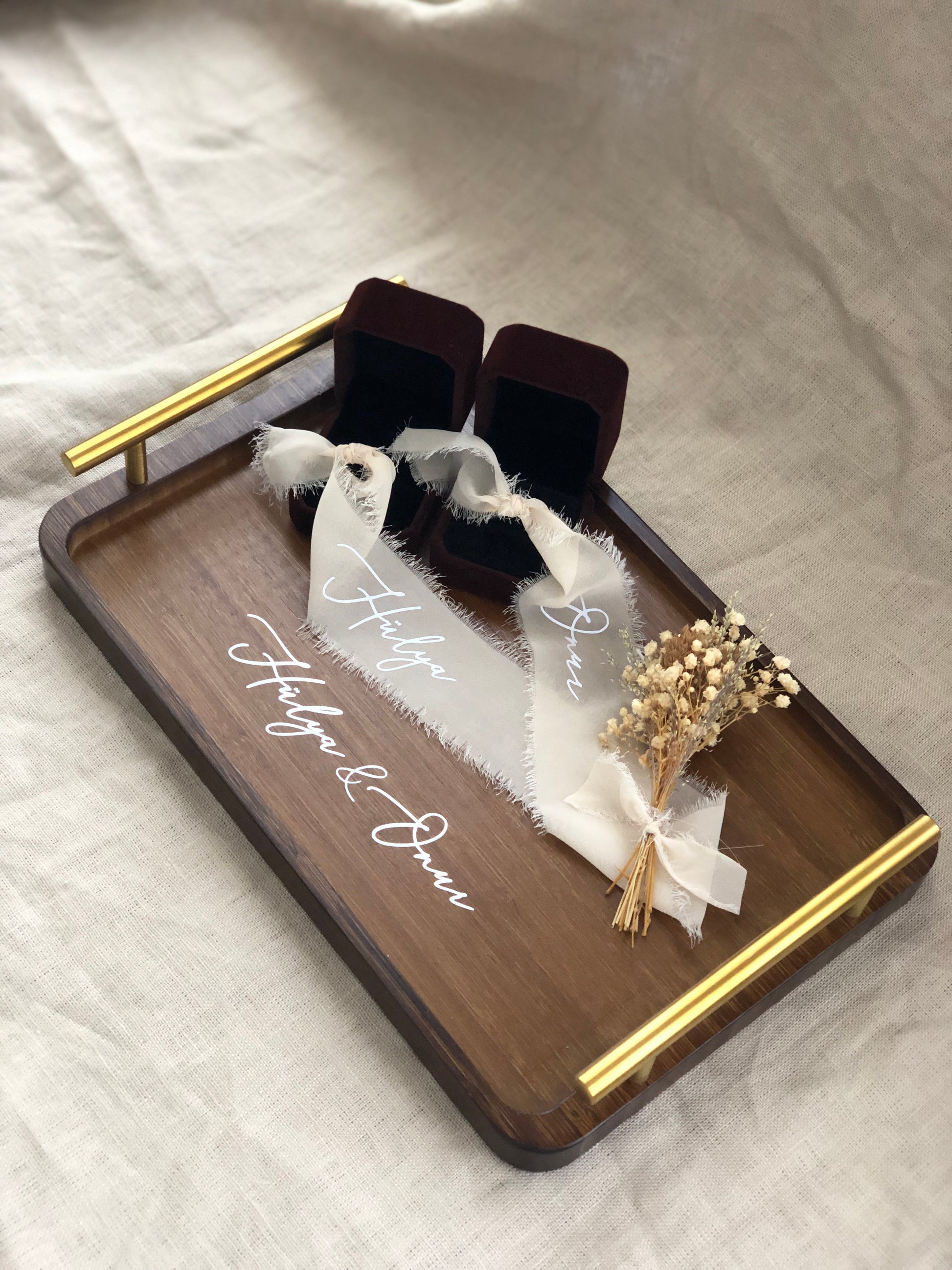 Verlobungstablett mit Ringband, Griffen und Trockenblumen